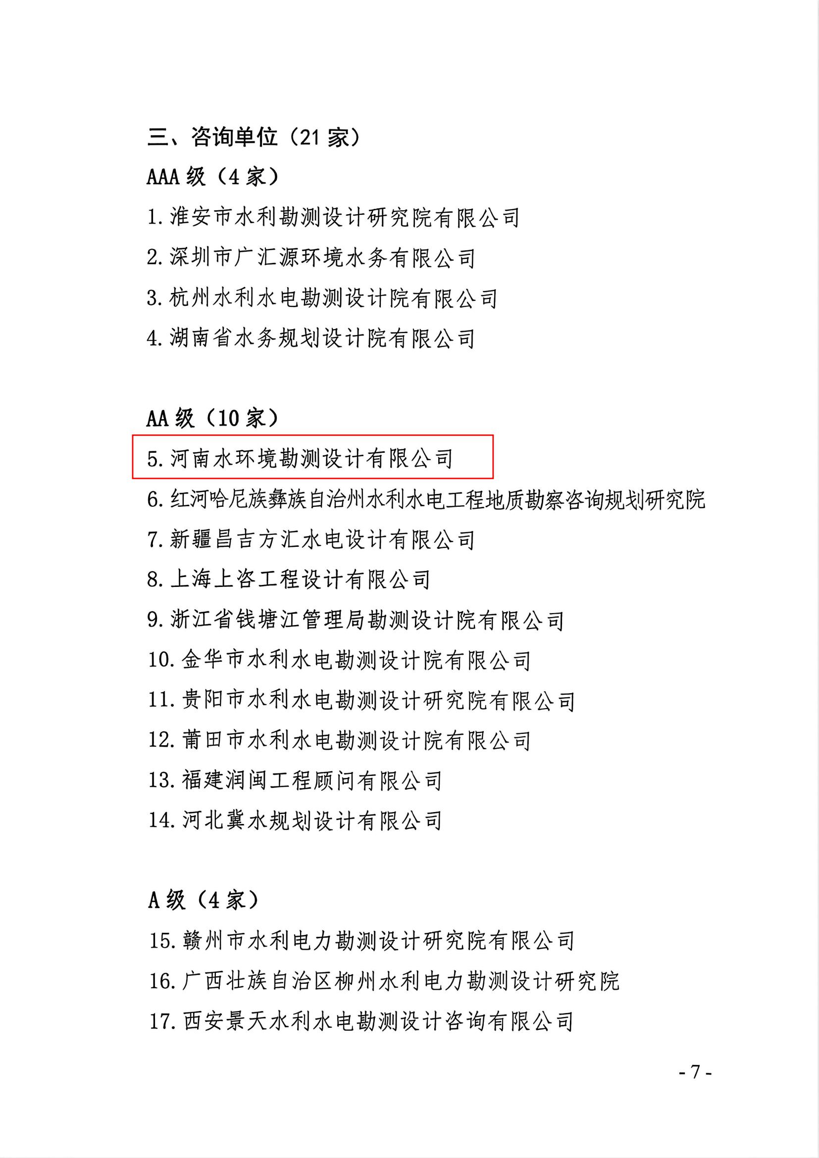 这份评价是行业对我司在水利勘察设计、咨询服务领域综合能力、履约水平与诚信经营的权威认可。未来,我们将继续以诚信为基、品质为魂,深耕水利事业,为行业发展添砖加瓦!